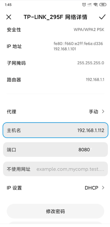 - 在手机配置代理,ip 配置为电脑的 ip 地址,端口配置为 mitmproxy 监听端口,默认 8080。